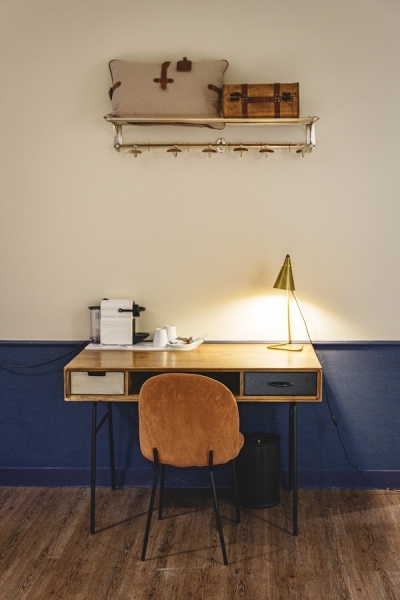 Dedicated to comfort and medium or long stays, this room is the most spacious in its category. It is equipped with a large 180x200 bed with integrated mattress topper and duvet, a 15m² bathroom adapted for PRM (People with Reduced Mobility), a magnifying mirror, a private terrace of 7m² and a courtesy tray with Nespresso coffee machine and Bodum kettle. We have taken great care in its decoration.